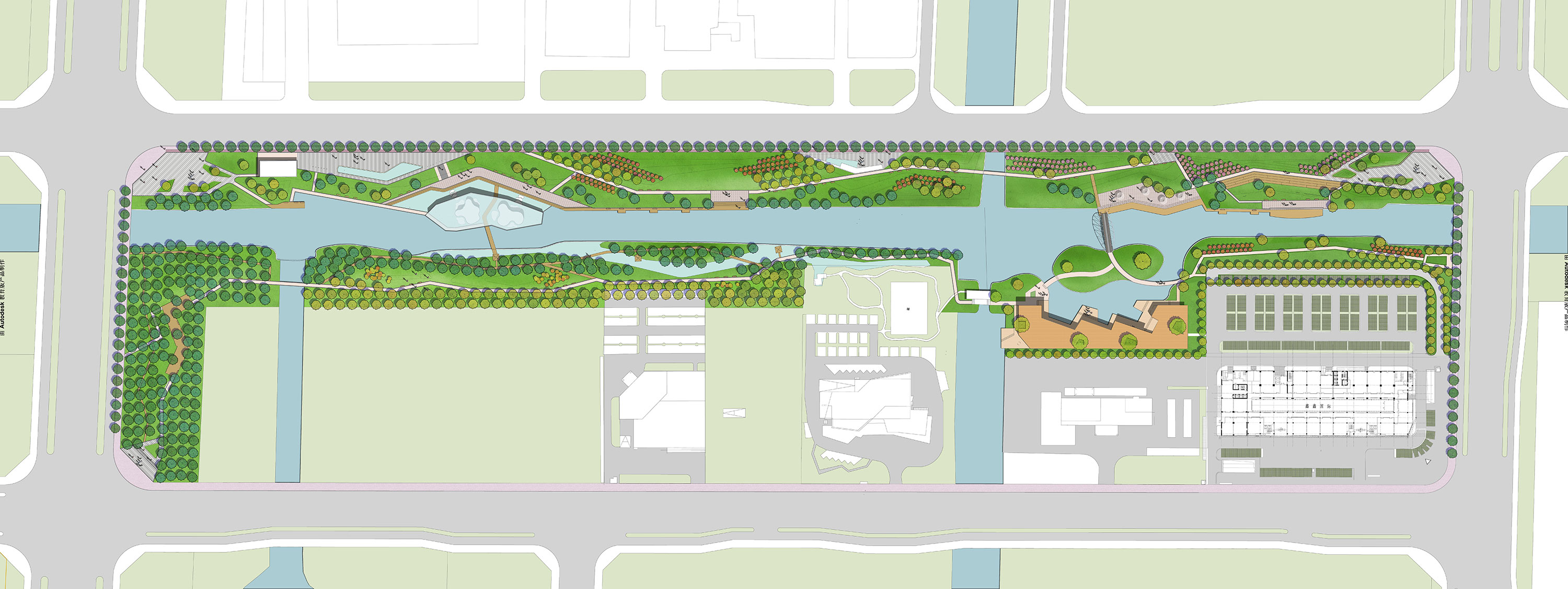 项目介绍 随着城市的发展和产业结构调整,城市中原有低效利用的城市绿化带如何合理的优化改造,满足周边人群的景观需求。打破传统河道被隔离的交通组织。综合考虑办公楼停车场和景观空间的无缝对接。最大尺度的保留 ...