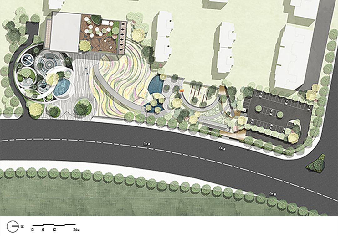 项目示范区位于烟台芝罘区,周边自然景观丰富,东紧邻蓁山自然景观,南侧有一自然小山丘,为基地提供了良好的借景自然环境。项目示范区紧邻市政路,基地内高差较大,有售楼处。 设计主 ...
