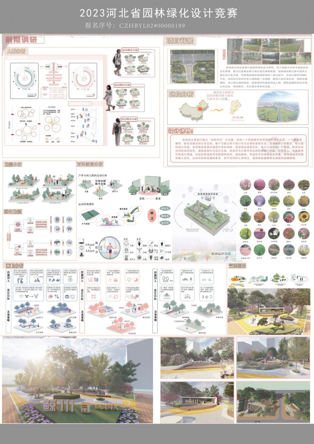 一、项目概况该项目以河北省第六届园林博览会为契机,深入挖掘大运河丰富的历史文化资源,借力打造高品质口袋公园为竞赛背景。选择地处鲸川路与迎宾大道交叉口东北角、东南角的两块绿地即地块二进行设计,总设计面积 ...