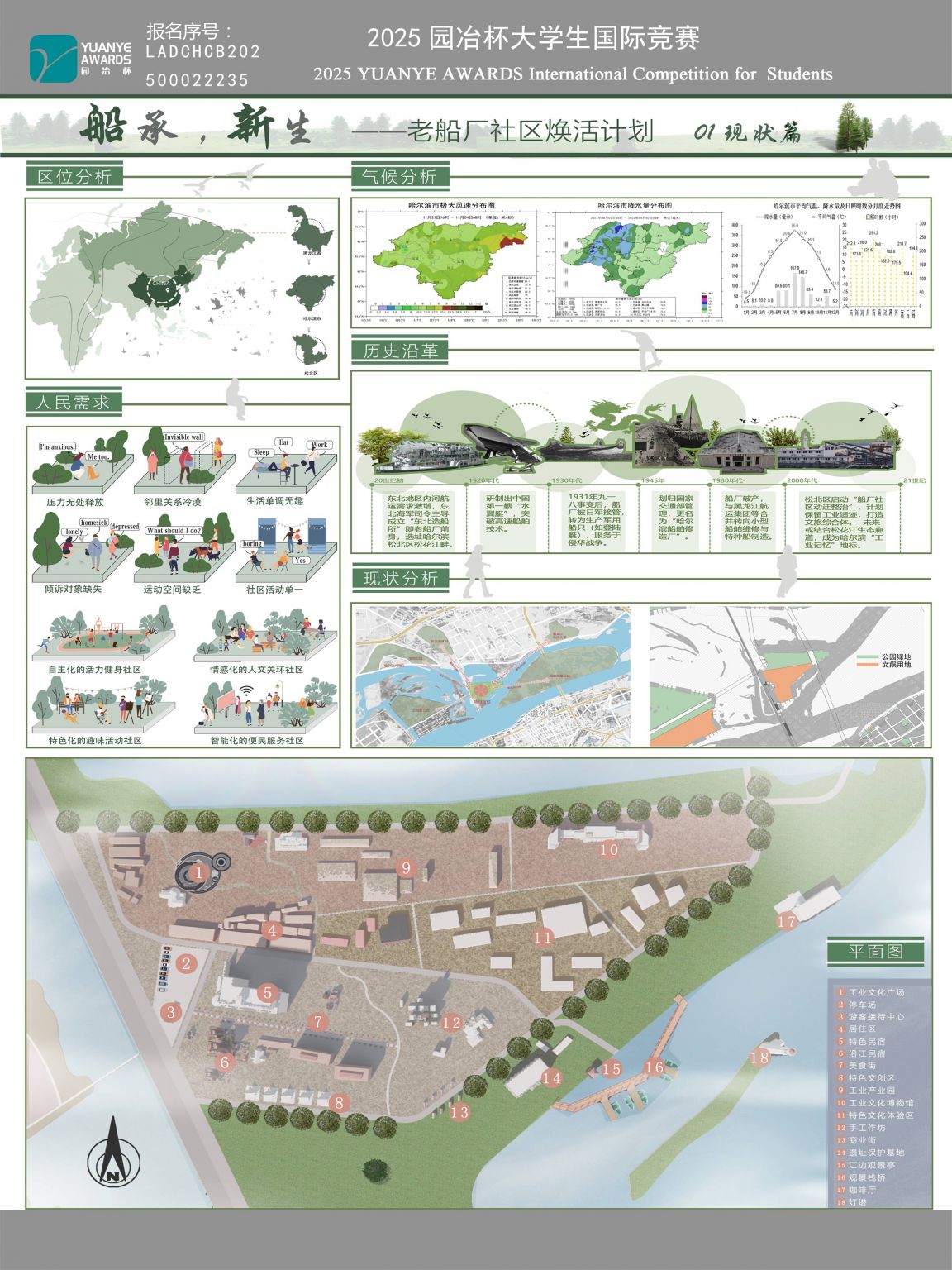 本帖最后由 chenshiyi 于 2025-7-16 21:49 编辑 “船承·新生—老船厂社区焕活计划”以工业遗产保护为基底,以“记忆延续+功能再生”为核心。保留船厂标志性船坞、龙门吊等工业元素,通过空间重构注入现代生活场 ...