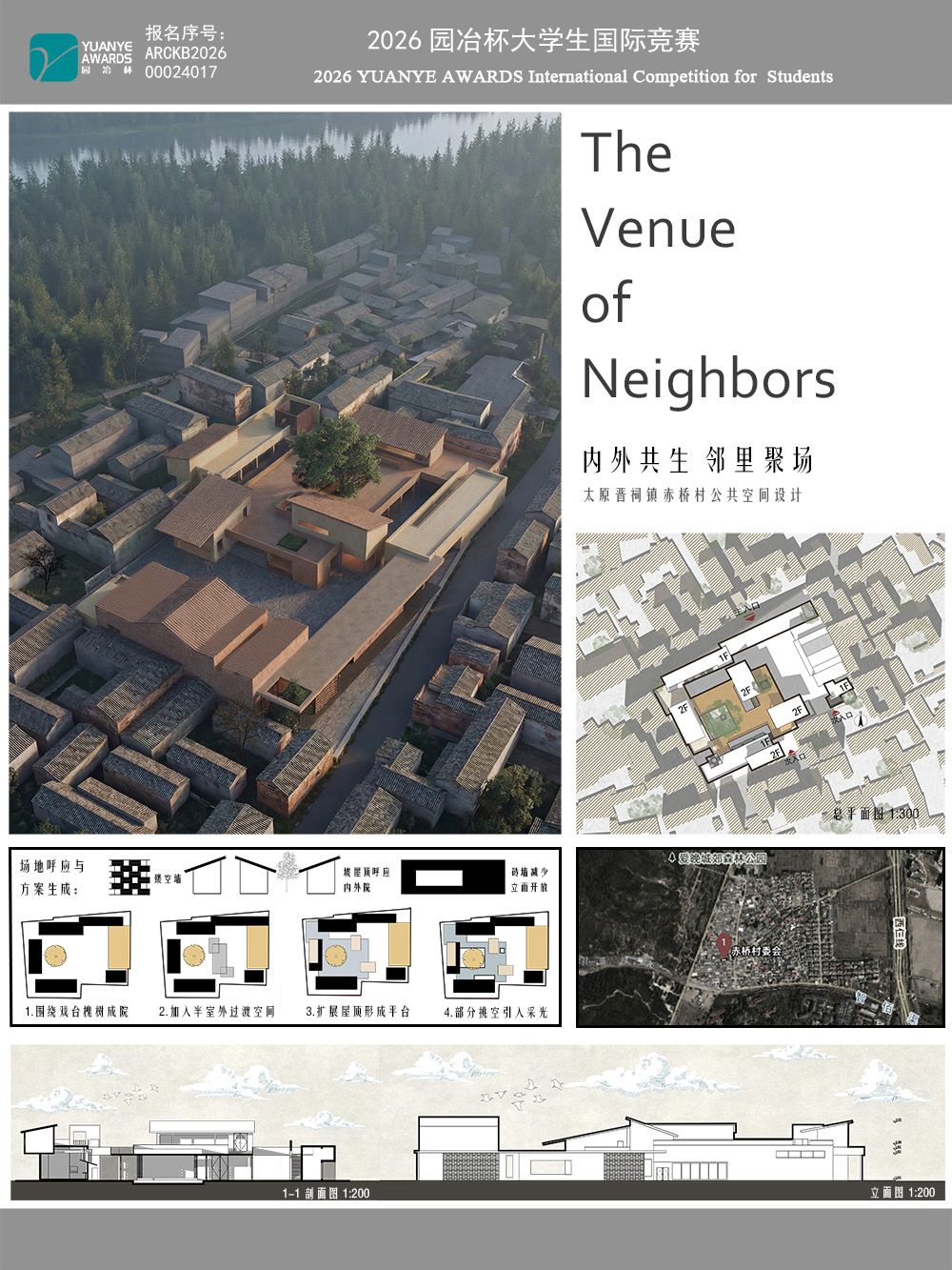 设计说明: 赤桥村承载着深厚的乡土文脉,古戏台是村民文化生活的记忆锚点,大槐树是村落精神的凝聚象征。 本设计以“双院共生,邻里聚场”为核心,将场地划分为两大核心院落:以开敝的空间呼应戏台的公共属性,为村 ...