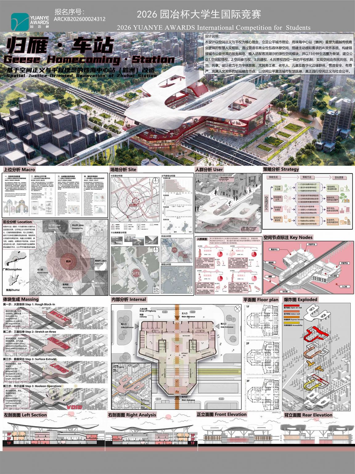 设计说明: 本设计以空间正义与平权为核心理念,立足公平城市理论,将珠海中心站(鹤洲)重塑为超越传统商业逻辑的智慧人文枢纽。通过营造非商业性包容休憩空间、搭建主动感知需求的AI关怀系统、构建链接城市公益资 ...