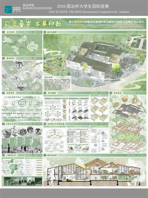 项目位于蕲春县新塘村一处废弃采石矿坑。设计以“叠印理论”为核心策略,将工业遗迹与蕲艾本草文化进行物质性叠加。保留矿坑崖壁、矿渣、矿脉等原生痕迹,依势植入游客服务、艾文化展示、VR体验、观景挑台等功能。14 ...