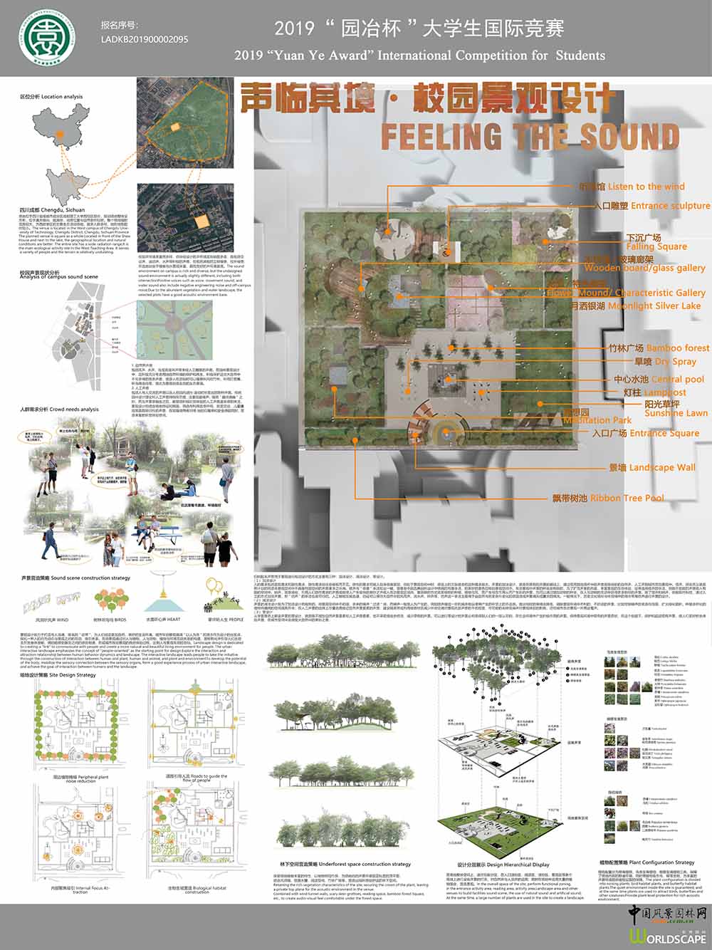 本帖最后由 贾鑫睿 于 2019-6-17 19:29 编辑 本设计通过对校园景观的设计改造,致力于创造一种用耳朵可以“看”的景观。也就是将声景(Soundscape)作为运用主题,研究人、听觉、声环境与社会之间的相互关系,重 ...