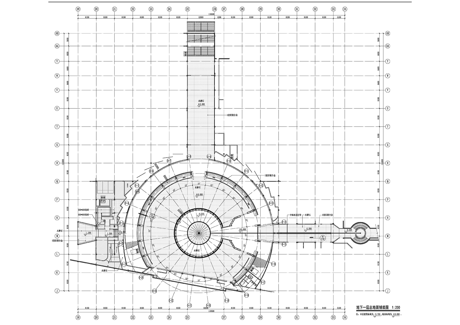 水下展厅,甬道及功勋柱平面图 UnderwaterExhibition Hall, the Passage, and the Pillar of Meritorious