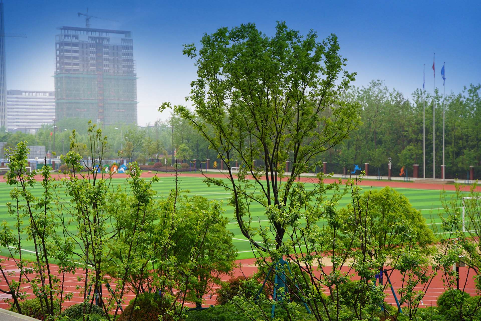本项目配置遵循气候、场地、美观、净化等多方面因素,既有大气开阔的树阵广场,亦有静谧林荫的阅读环境,同时点缀精致宜人的观赏花镜,结合整齐的绿篱与爬藤植物,使校园内充满生机。