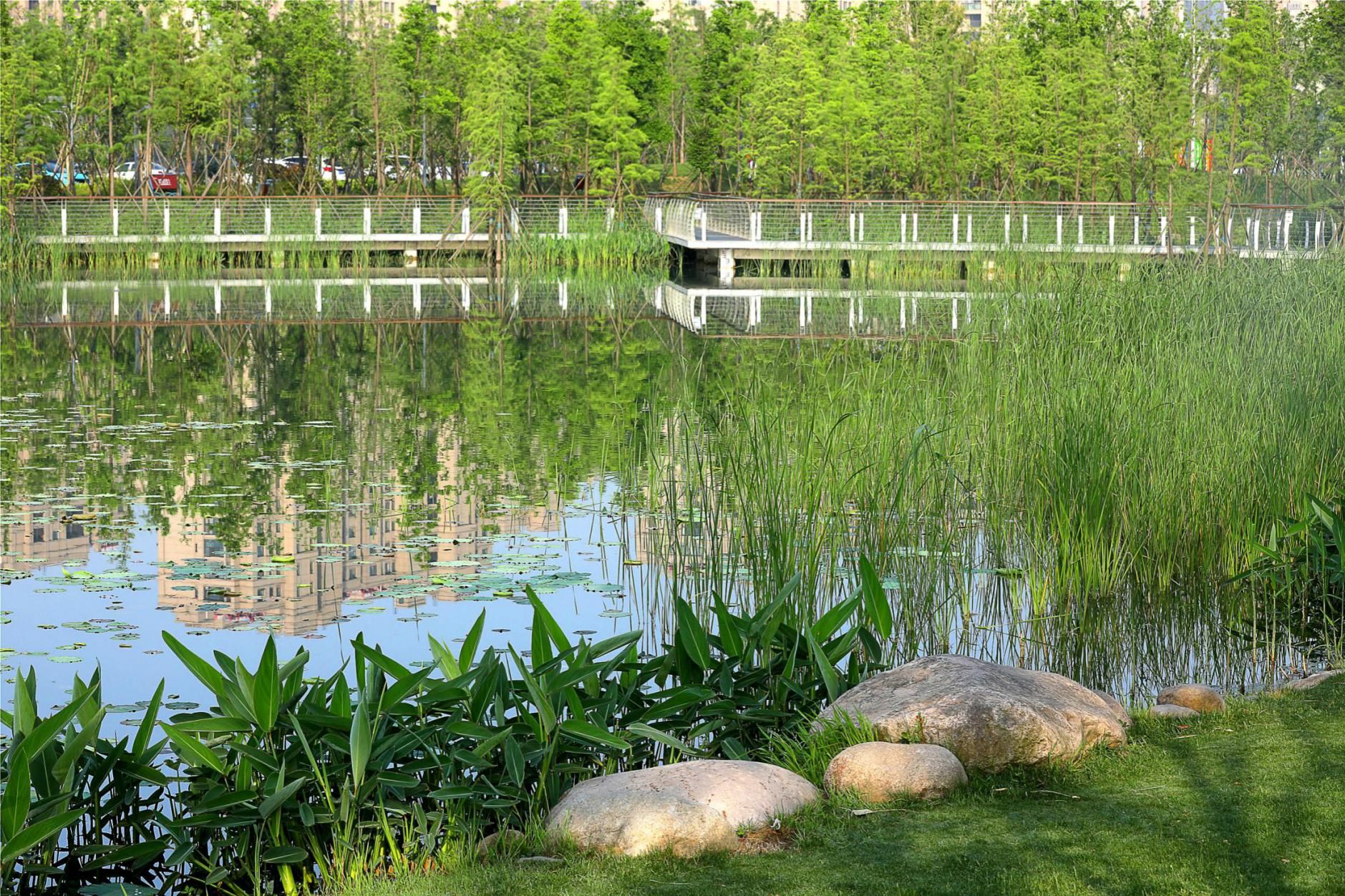 公园通过植物生态性的合理搭配,水体的净化处理以及海绵城市、生态停车场等生态技术手段的运用,营造出了良好的公园基底环境,吸引了更多的鸟类及其他动物的到来和居宜居美、岛聚鸟美的自然和谐环境。