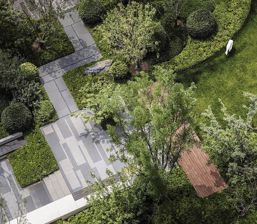 只在不得不做的空间里,强化品质感,让有限的硬质空间隐匿于自然之中。 最大化场地的软硬比,克制硬质景观的面积,可以有效的控制成本和限额设计的实践,前期成本的投入也更加弹性。
