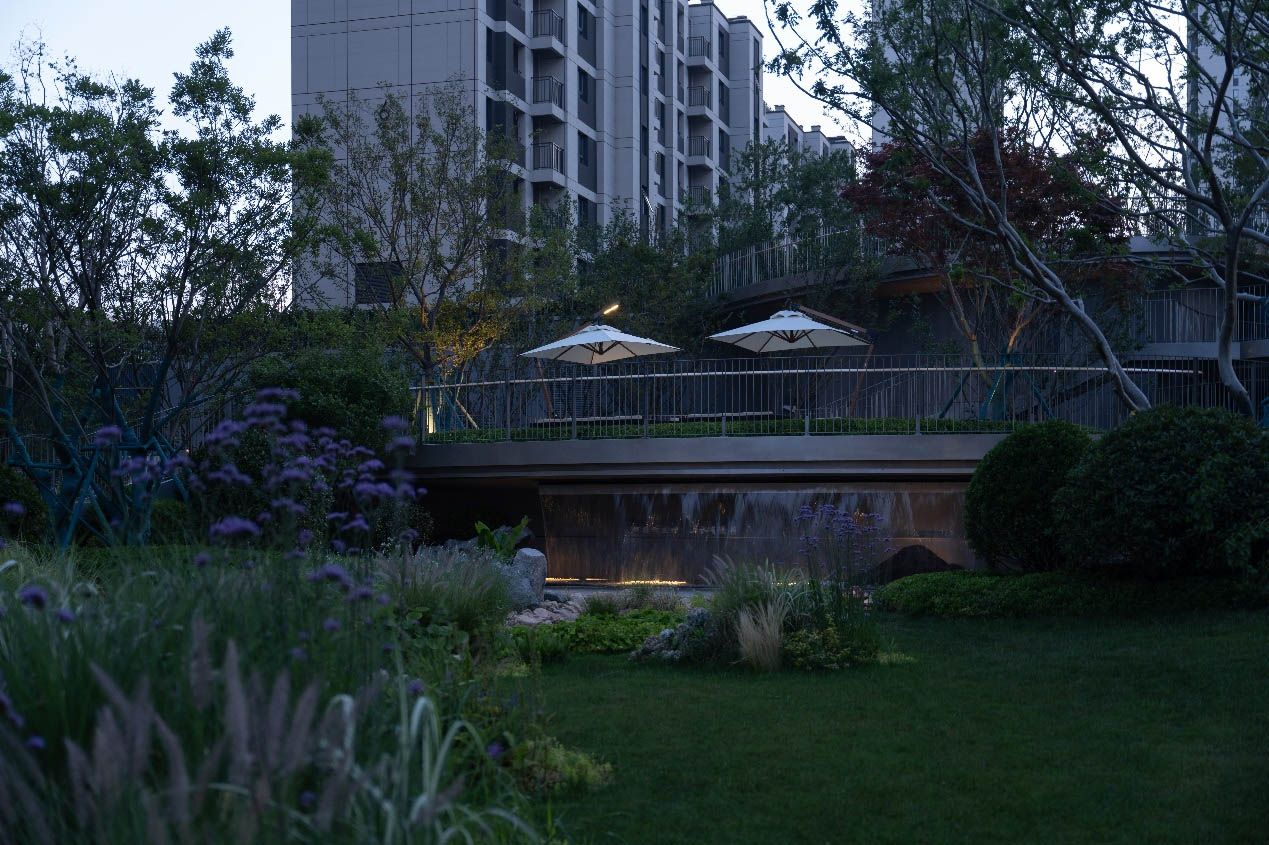 无论是白天的自然光线还是夜晚的星光灯设计,半山雲境都呈现出不同的光影魅力。我们利用明暗、色彩和质感的对比,创造出日夜皆宜的景观体验。 利用近8米的竖向空间,我们顺势而为,精心设计了多个功能各异的景观平台,让自然与生活空间完美融合。且打造了一个和谐的立体景观网络,让每一位访客与生活在其中的人都能体验到不同的视角和感受。 “飞桥”穿梭于绿植之间,连接着各个平台,为漫步提供了便捷的通道。走在桥上精心布置的绿植穿插在跌瀑和飞桥之间,仿佛穿梭在森林之中,让人与自然的距离更加亲近。不仅美化了视觉,更为生态平衡贡献了力量。我们致力于营造与自然和谐共生,绿色生态的居住环境。