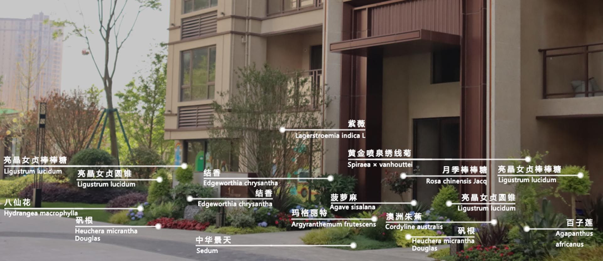 【01夹道迎宾】 银杏是不言的庄重,迎客松和杜鹃是绽放的热情;中轴为线,两侧对称而立,是视线引导,更是居者归家、亲朋来访的尊重仪式。
