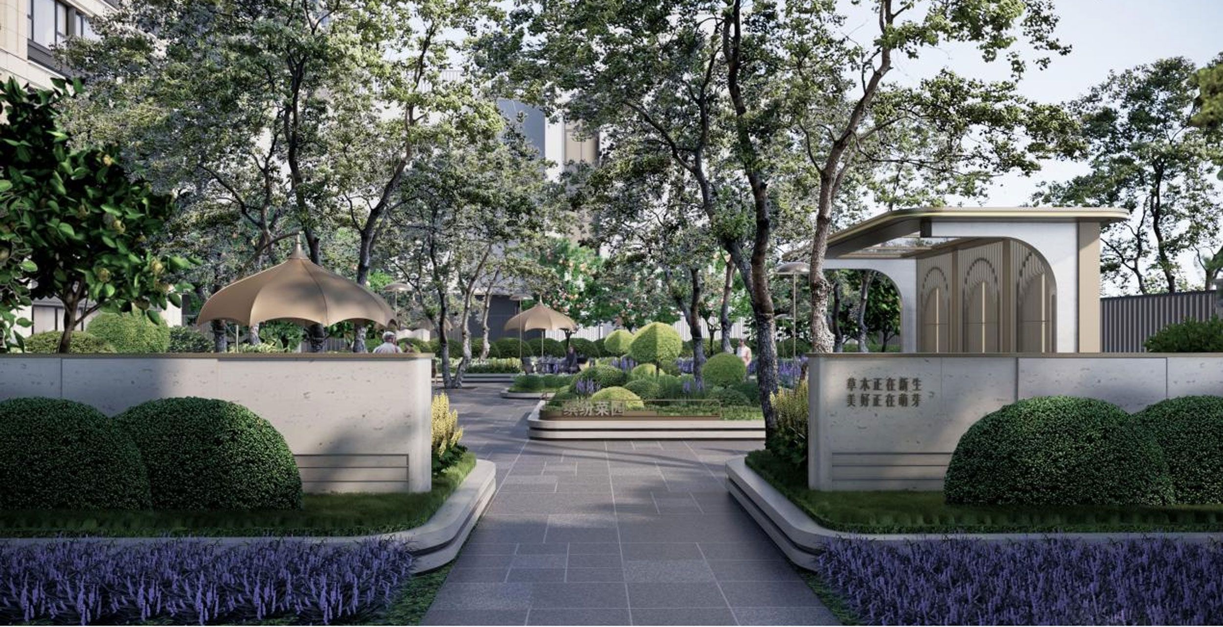 在现代与古典之间寻找新的元素与手法,植入到真切的生活感受中;去探索当代高品质居住的发展趋势,在材料与细节之处挖掘奢华的可能性价值 【疏影庭】景观 走出大堂,空间豁然开朗,心情无限放松 两侧通过廊体串联动线,形成不同框景感受,增加动线上的视觉丰富度 【疏影庭】景观 双层镜面水景,结合池底异形石材增加景观细节;轴线末端的对景墙,拉长景深层次,增强视线纵深感 以艺术之名,塑造尊享奢华新境界 【次入口】景观 入口门头结合两侧景墙,点缀奢石,打造多层次、庄重高贵的入口景观 【次入口花园】景观 多层次景观元素相结合,打造花园感空间 【次入口花园】景观 感受午后庄园的慵懒惬意,仪式感与浪漫并存 【灵感花园】景观 云朵轻柔的坠入绵软的草坪,静享午后花园的慵懒与浪漫 【灵感花园】景观 林下灵动空间,结合芳香花境的种植,打造治愈系的灵感花园 【果蔬乐园】景观 【果蔬乐园】景观 主要设计理念 强调森系自然的林带,大绿量 北法的仪式性、尊贵感,高级定制的价值感。结合南法的自然风情、精奢度假感、松弛感 在颜值、植物、功能方面,打造差异化景观 小结: 通过景观设计提升,结合植物、水体、构筑物等景观元素,充分发挥植物个体与群体的形态、色彩、质感、线条等自然美,整体的颜值、品质、价值感得到了大幅提升,通过森系绿带的营造满足了业主四季在室外活动的舒适需求 采用不同的构图形式,组成多维度的动态空间,满足人们多元化需求,实现园区内十大景点营造,不出社区就能让业主享受到十种不同的体验感 同时,使之成为具有较高美学价值、生态价值、文化价值、社会价值、经济价值等丰富内涵的活的动态景观综合体。 |