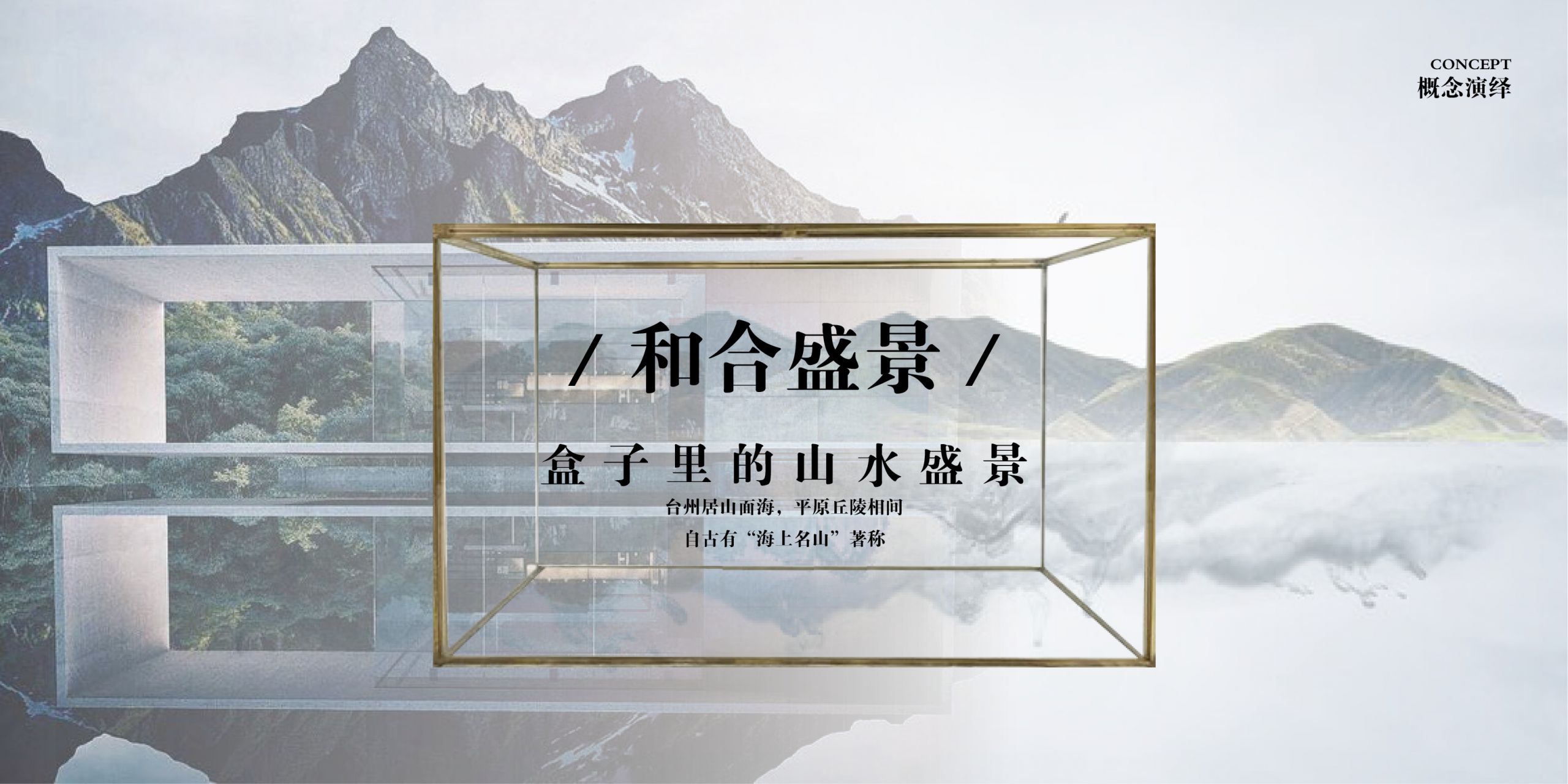 台州为“中国和合之乡”,设计溯源地域文脉和合之源,与区位天盛中心相融,提出“盛世天盛·和合成景”的概念主题,以台州居山面海、平原丘陵相间的独特山水脉络为灵感,以盒子里的山水盛景为思路,将台州山水之美通过景观语言转译纳入园中,以雅奢为笔,以纯粹为形,挖掘属于台州的山水诗意,营造一个“典而不古”的现代都市园林度假豪宅。