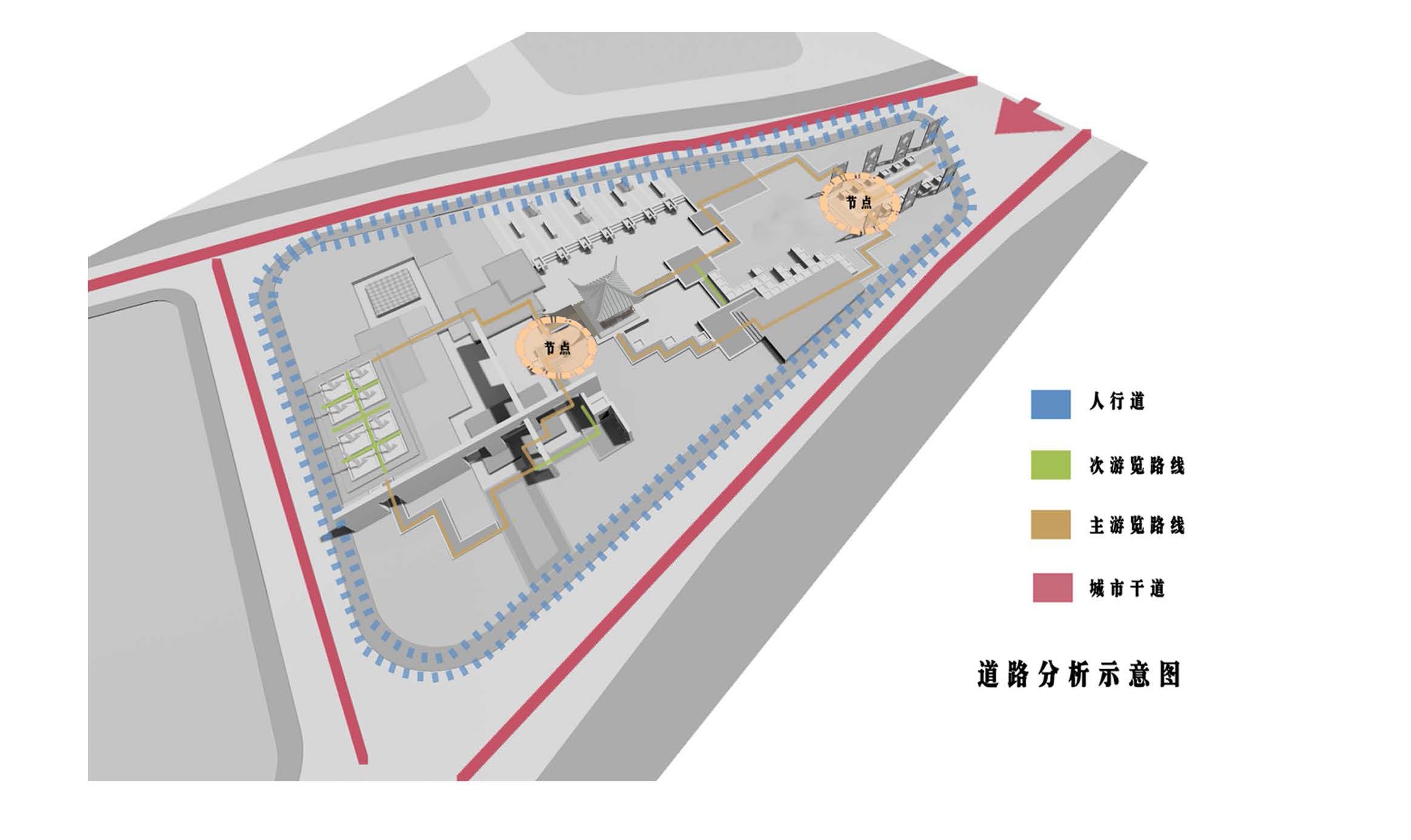 一心,围绕水景为中心,通过道路与周边多个小广场空间、亲水平台、景观建筑连接,形成归属感的集散空间及亲和力的文化景观生态中心)。