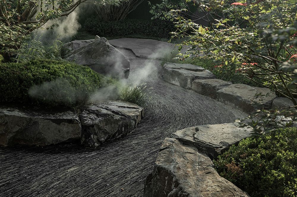 【宫廊 |廊腰缦回】 功能场景和软景植物相结合,质朴中显现奢华气质 山水是皇家园林中不可或缺的元素,我们希望通过对场地实土区域的地形抬升,形成山水台地的景观基底,将自然山水的脉络蔓延进园林之中,树木、水系、花园将以这种艺术的方式在这里被重塑,进而实现皇家苑囿的当代美学表达。