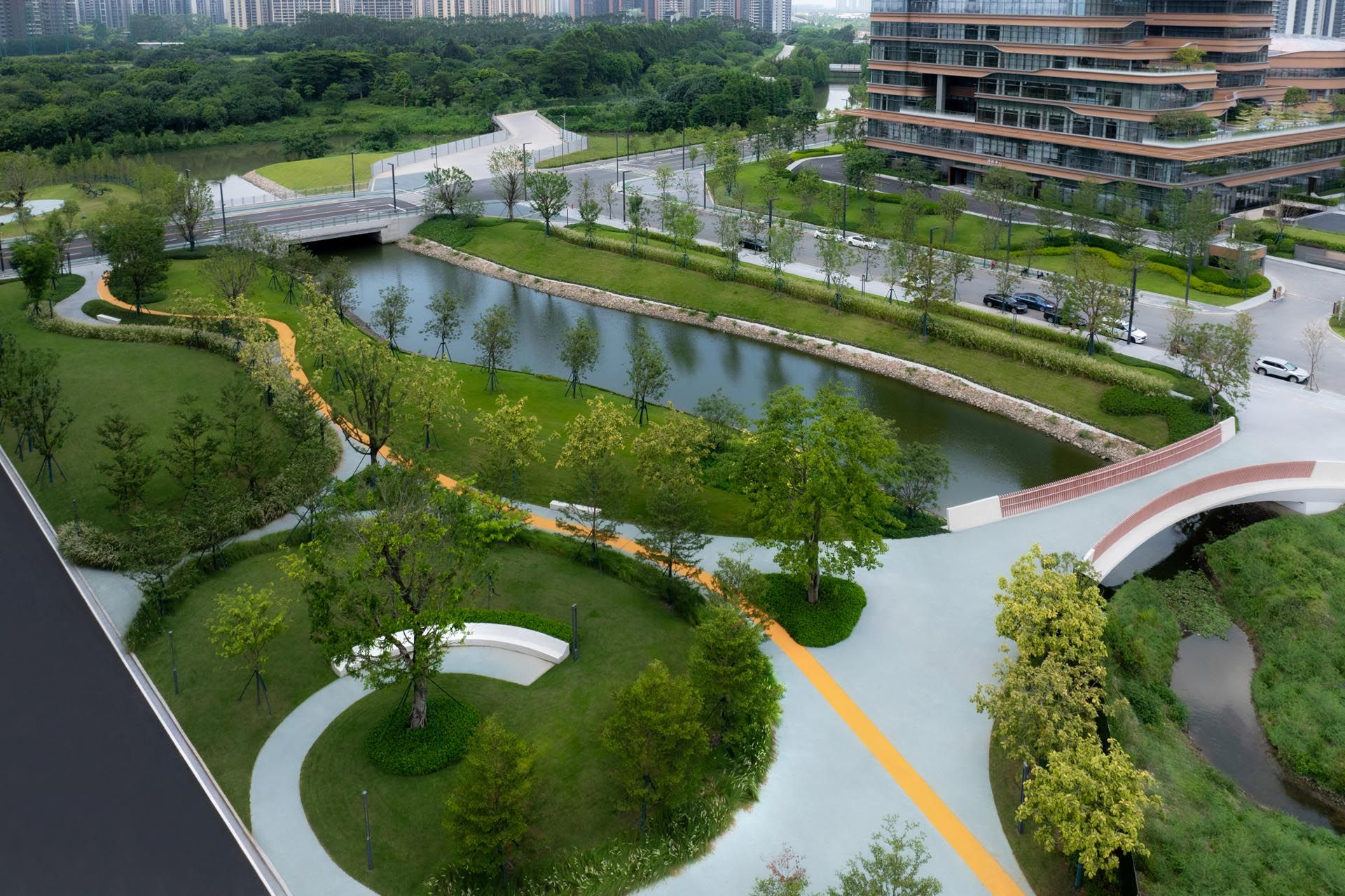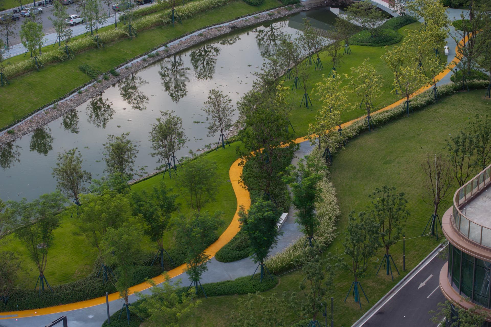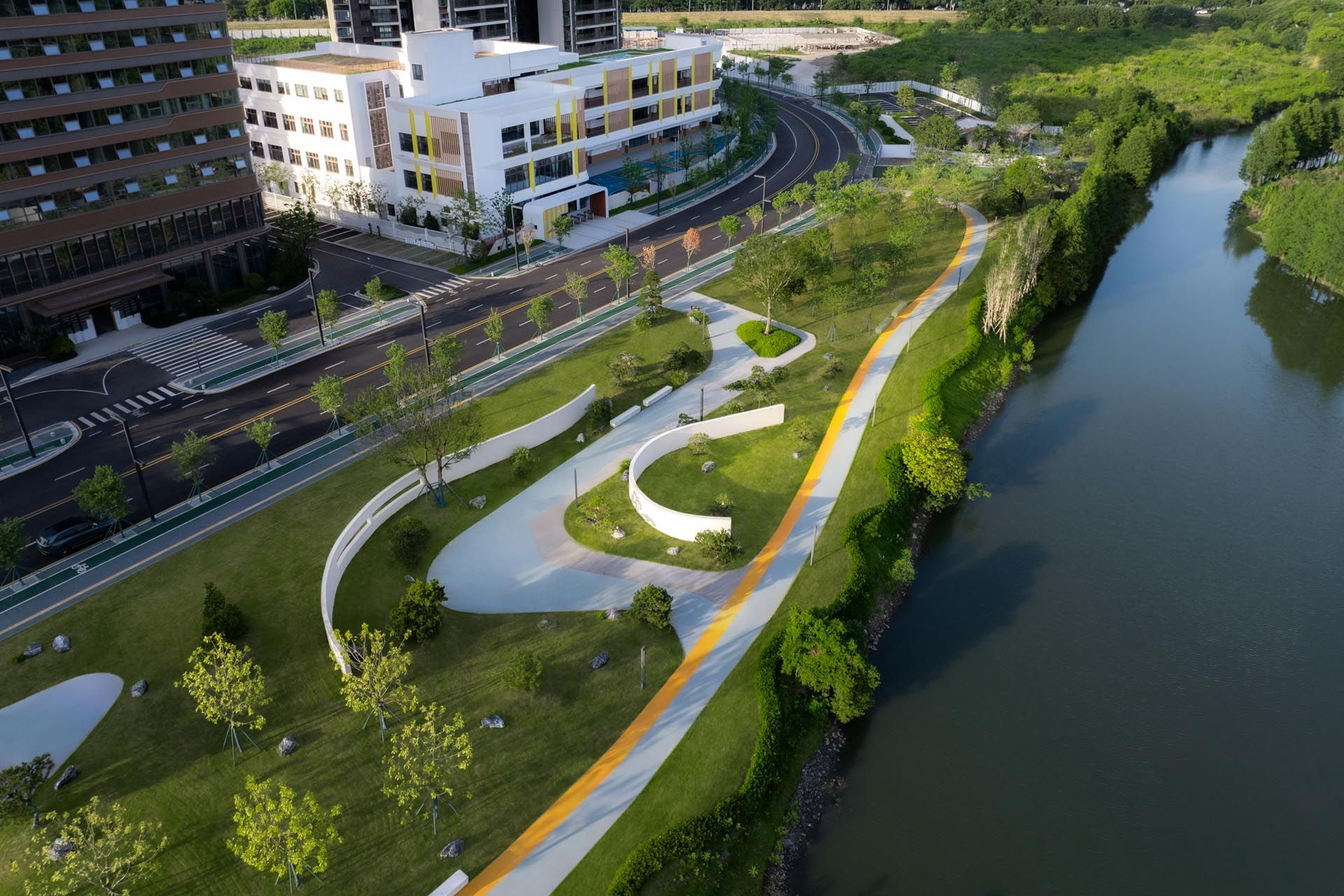 在这片滨水绿洲中,日本黑松的优雅姿态与蜿蜒跑道的活力律动交织成一幅生机勃勃的画卷,不仅滋养了身心,也造就了社区的和谐与自然的交响。