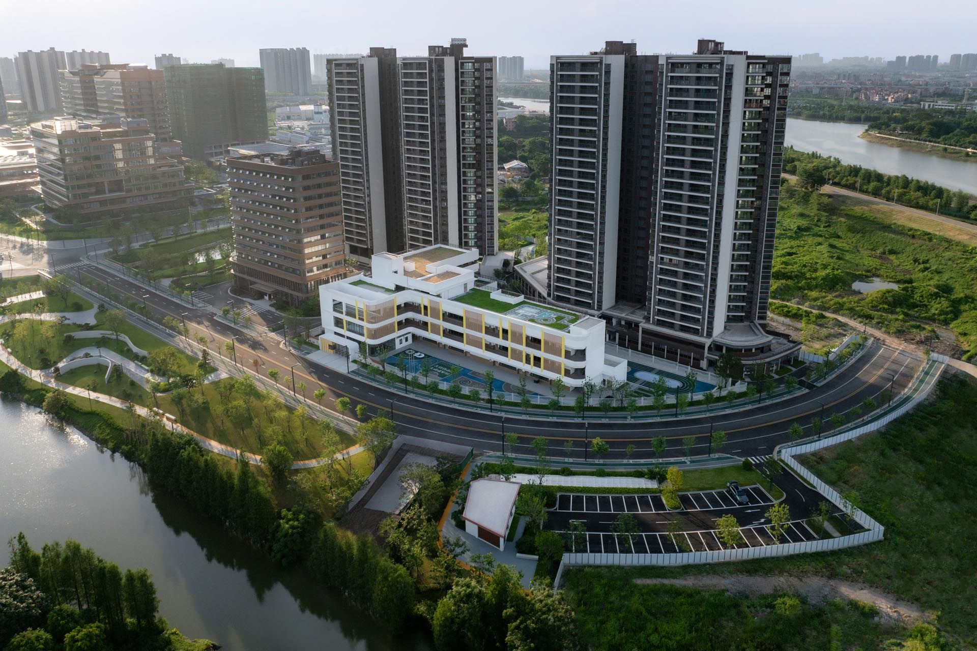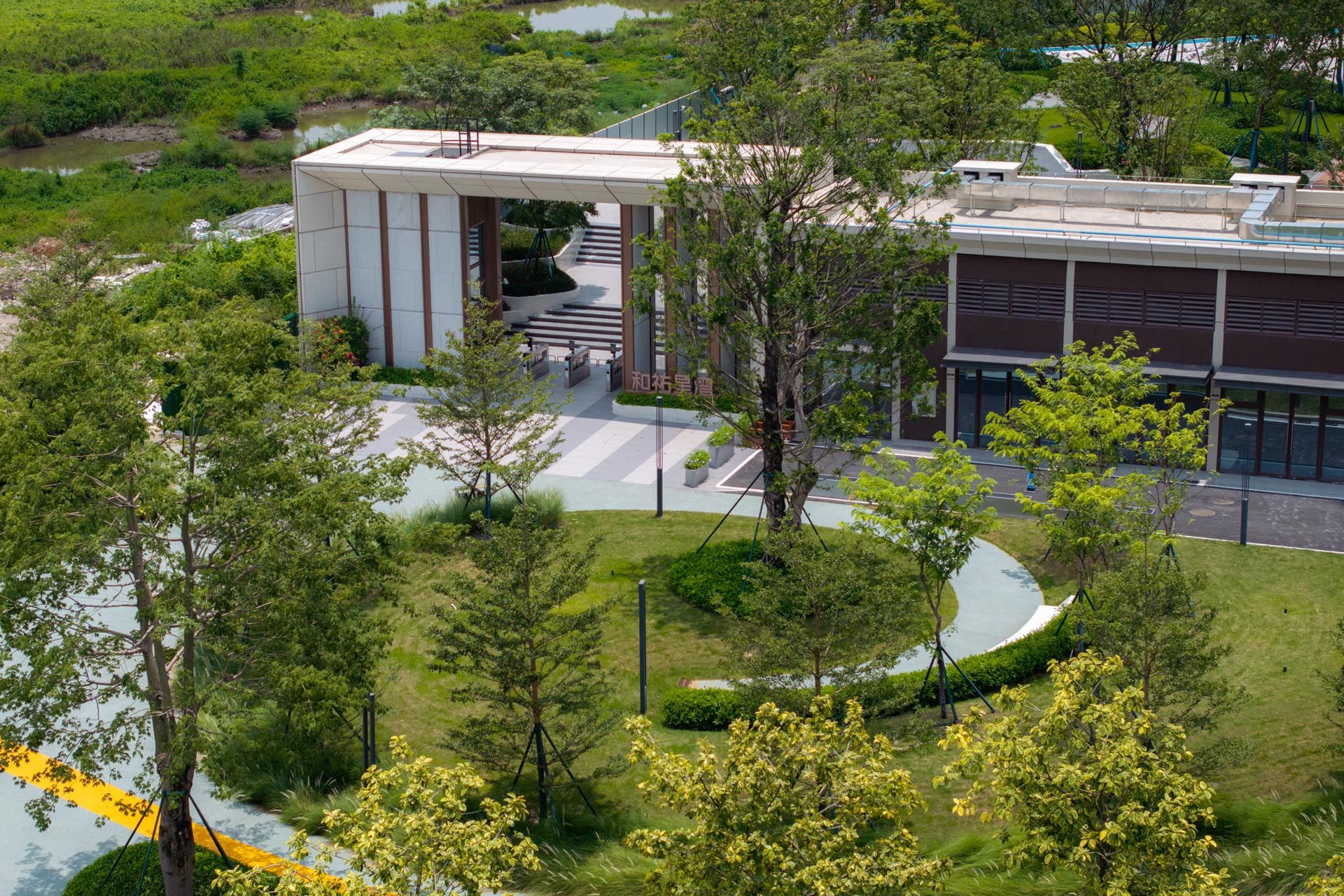 场地位于佛山顺德区北滘镇和祐医院东侧,场地周边河岸资源丰富,环境优美,场地较为平整,周边以规划居住用地为主。我们用现代设计的手法,利用曲线的元素,将花草、树木、流水、石头置于场地,打造疗愈自然、独属北滘的森系公园。在河流的宁静怀抱中,日本远道而来的黑松以其挺拔的姿态点缀着这片绿洲,一条蜿蜒的跑道则如同一条丝带,轻柔地环绕着这片美景,在这里感受森系公园的带给我们的自然和放松。