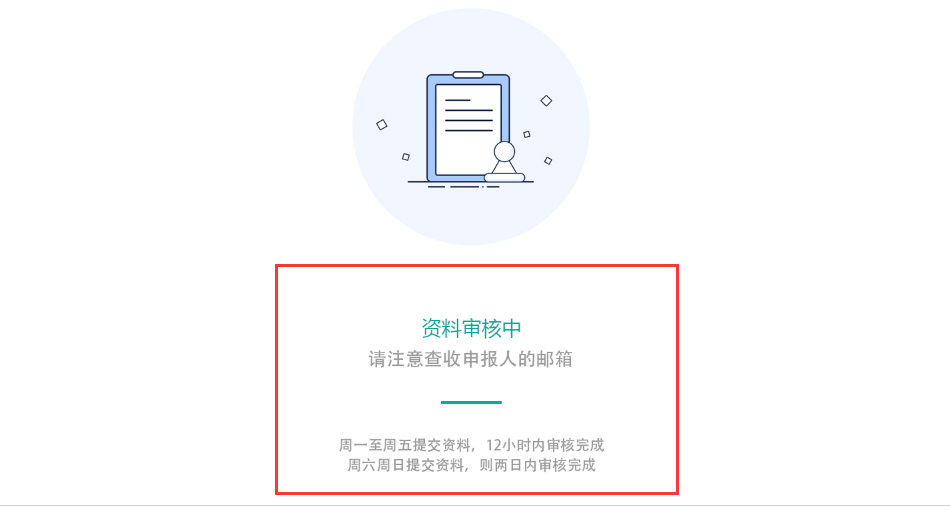 提交之后等待系统审核(周一到周五申报,12个小时内审核;周六至周日申报,2日内审核。)